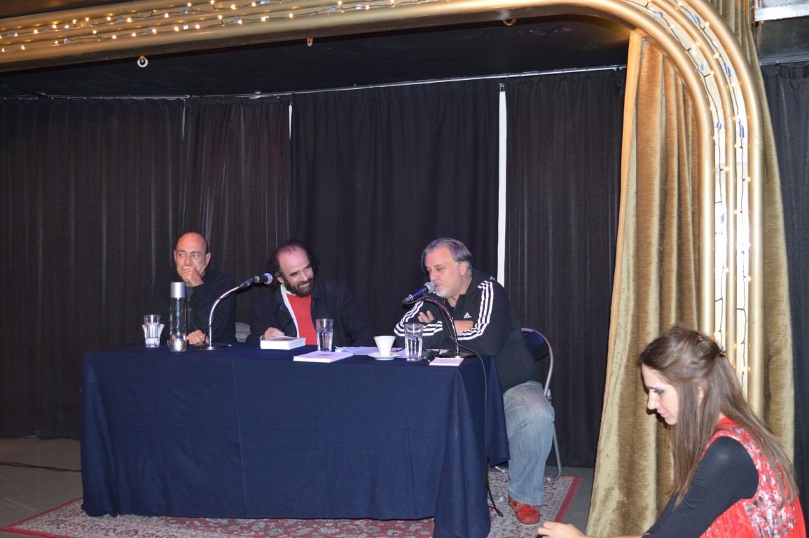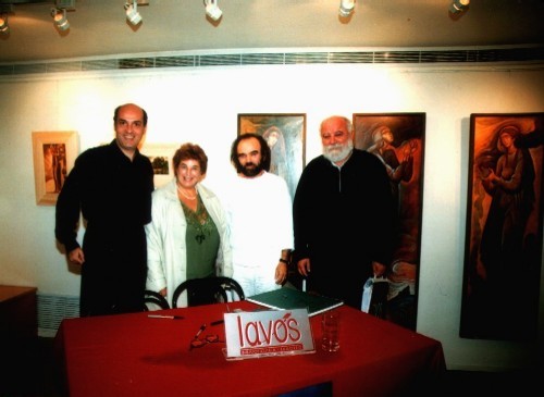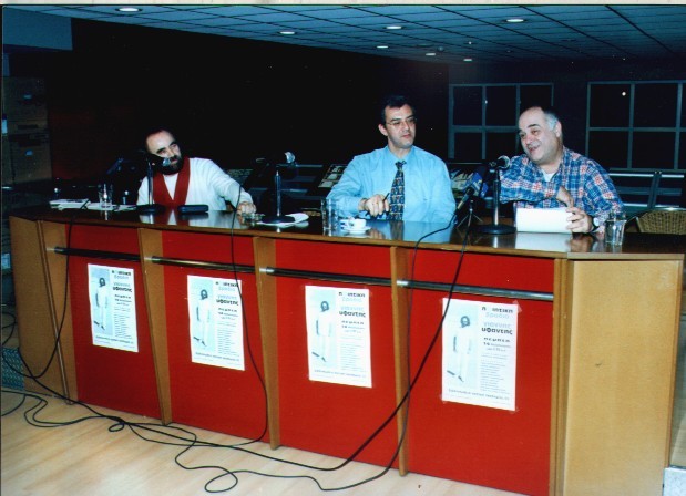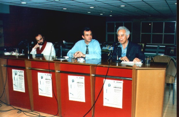 Νίκος Καρατζάς, Πελαγία Ζήτη, Γιάννης Υφαντής, Μανώλης Ρασούλης, κατα την παρουσίαση των ΑΡΧΕΤΥΠΩΝ, ΙΑΝΟΣ, Θεσσαλονίκη 2001 |