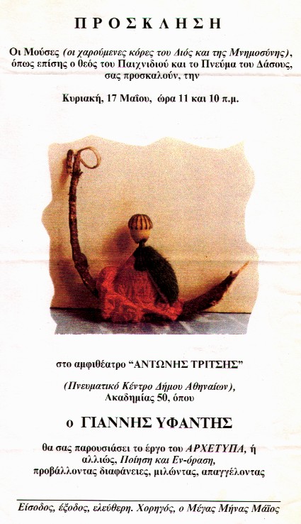 Παρουσίαση των ΑΡΧΕΤΥΠΩΝ στην αίθουσα Αντώνης Τρίτσης. Πολιτιστικό κέντρο Δήμου Αθηναίων, 1995 |