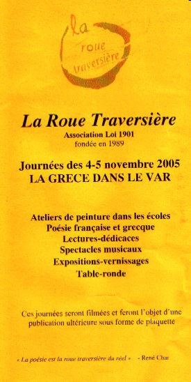 Μέρες του Νοέμβρη του 2005, στη Μπρινιόλ της Νότιας Γαλλίας: Ειδική εκδήλωση για τους 'Ελληνες καλλιτέχνες όπου την ελληνική ποίηση εκπροσώπησε ο Γιάννης Υφαντής |