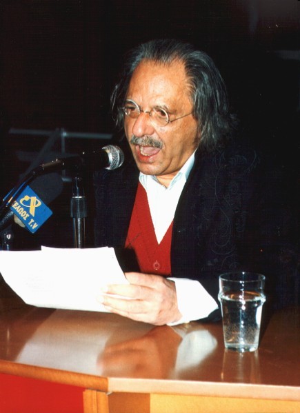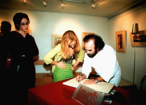 Ο ποιητής στον ΙΑΝΟ τον Οκτώβρη του 2001 υπογράφοντας το βιβλίο του ΑΡΧΕΤΥΠΑ για ξανθιά ύπαρξη υπό την επίβλεψη της Μαρίας Π. |
